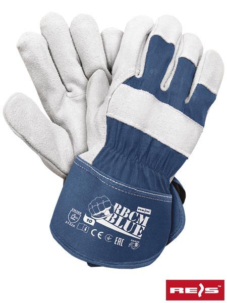 Rękawice ochronne wzmacniane skórą bydlęcą.